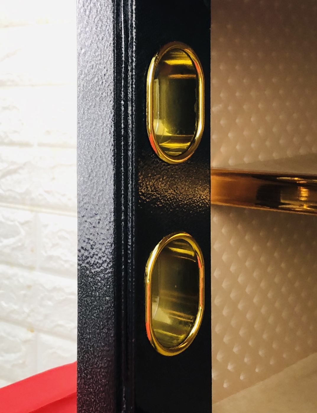 保險箱主要材質(鋼板),所以鋼板的厚度材質您必須了解清楚,鋼板厚度影響到保險箱價格也關係到遭遇電鑽、切割機等專用電動工具破壞時的抵抗能力。鋼板厚度正規來說10mm以上厚度能符合防盜保險櫃測試規範,但是乍看相同厚度鋼板卻可以展現出不一樣的抵抗能力,原因就在於採用的鋼板板材不一樣或者採用的是空心門板、空心門栓或是以薄板拼接出厚度的方式成型,一分錢一分貨在安全這方面可馬虎不得,而且保險櫃就直接呈現出截然不同的抵抗能力,建議採買時務必慎選以免掉進價格陷阱。